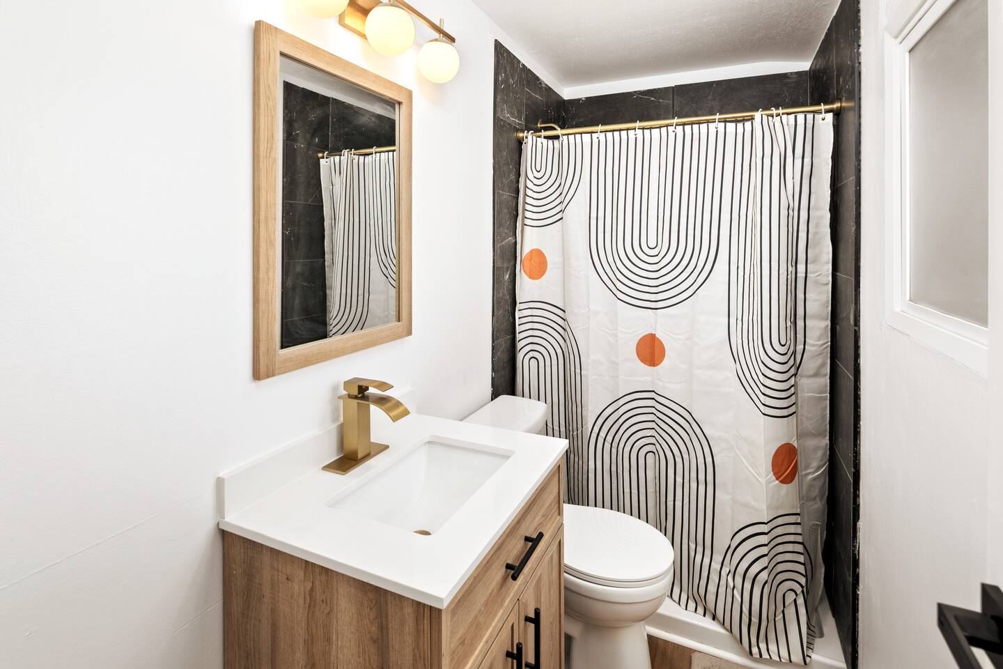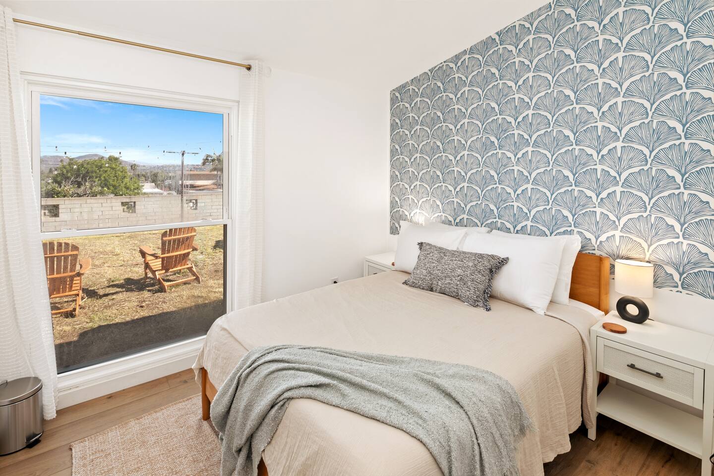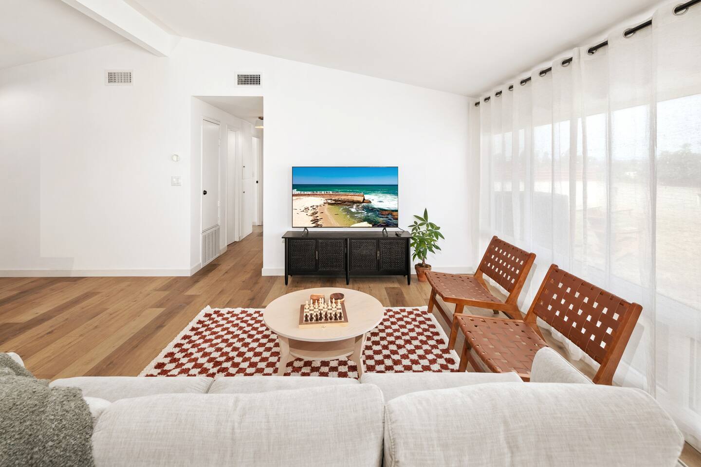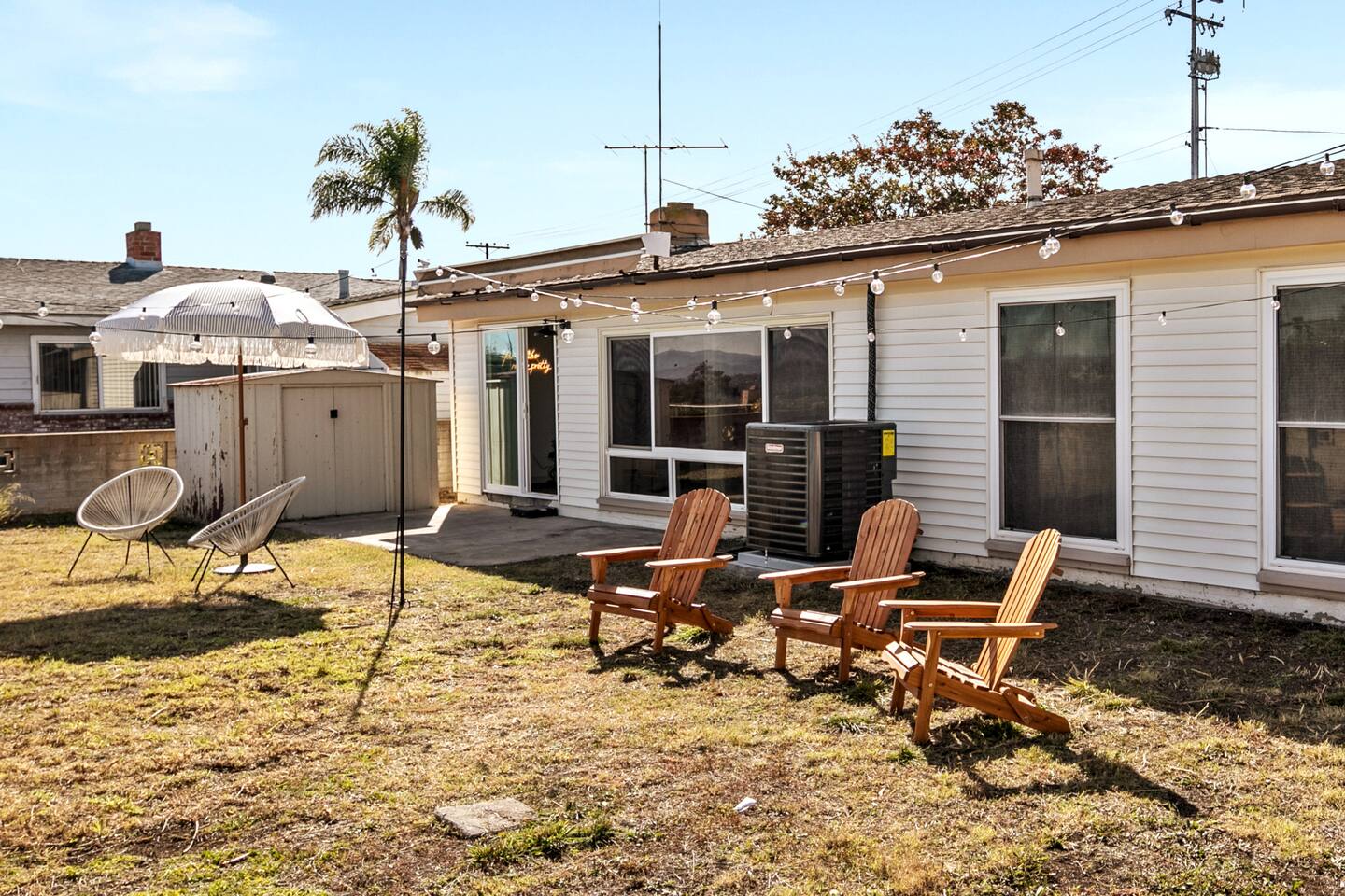 New modern open kitchen with dedicated island bar. 3 stunning bedrooms, 2 new bathrooms, a 60" Samsung smart TV in the living room, open backyard and central A/C. ROOMS-Primary room has a KING size bed with a private bathroom. Second room has a QUEEN bedroom and a dedicated work space. Third room has a FULL bed with perfect access to the backyard views. All memory mattresses are extremely comfortable with hotel quality crisp white linens & towels for your convenience and a fall size standing mirror for you to get ready in. Rooms are all decorated with attention to details and comfort. Each of the bathrooms all have hair dryers, complimentary shampoo, conditioner & gel body wash. In the hallway cabinet 4 beach towels are also provided for guests to use. Each bedroom has an extra blanket in the closet. Kitchen is open, spacious and has a Keurig (pods and ground) coffeemaker, pour over, microwave, blender, toaster, cocktail maker set, a dishwasher and a huge quartz kitchen island where you there's bar seating for those who want a quick bite. Kitchen is also FULLY stocked with all cooking utensils, pots/pans & appliances you need for cooking. Stove has a electric range and a large farmers sink. You can also catch the TV from the kitchen so you can keep up with all the sport games and movies. Dining room has a table for 8. Dining room table or kitchen island are perfect areas to sit and work at as well. To get you started upon your arrival, we do provide a salt & pepper shaker, 6 complimentary coffee pods, 2 dishwasher pods, 2 laundry pods, extra trash bags, cleaning spray, sponge, and extra paper towel roll. A first aid kit is also provided in the bar cabinet. Living room has a comfy couch along with a couple of leather seats with a 60" TV along with High-speed (1 GB) internet connection - perfect for those who need speed for work. Media cabinet has several board games such as Tacos and Burritos, Do You Know Your Family, playing cards and puzzles. We also have a vintage Sony record player with several vinyls available, choose one and enjoy your morning coffee with some crisp music! Backyard features a brand new BBQ, a comfortable seating area/couch with a propane fire pit to hang out and relax in. Also has a dining table that seats up to 6 with an umbrella for those sunny days, a corn hole game, jenga, and connect 4. This house is stocked with bath towels, hairdryers, Irons, and hotel-style body wash and shampoo/conditioner. If you need anything additional during your stay, please feel free to reach out by messaging me on the Airbnb thread.