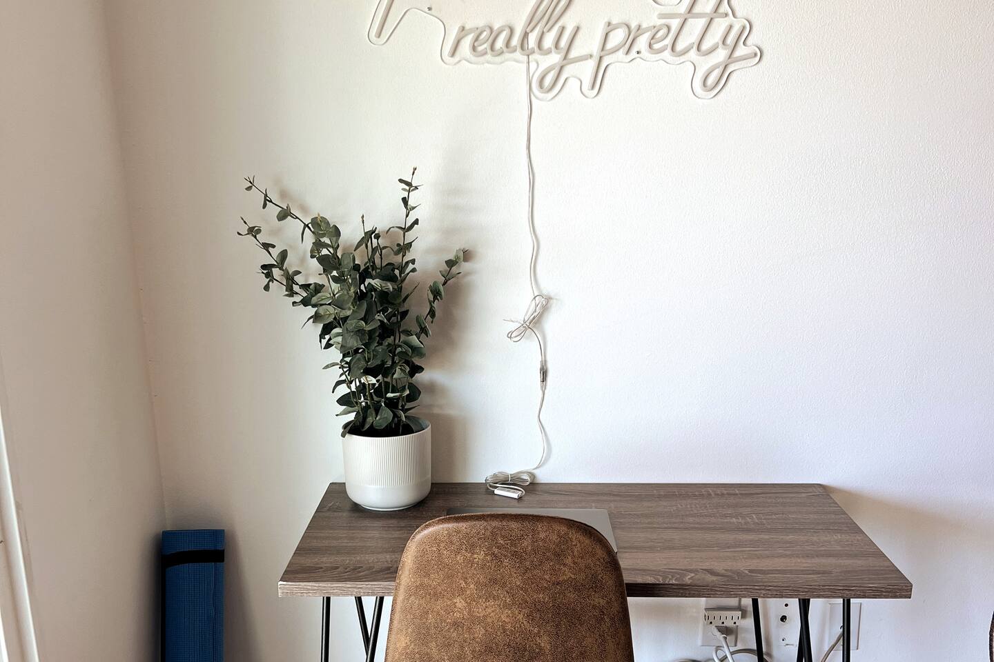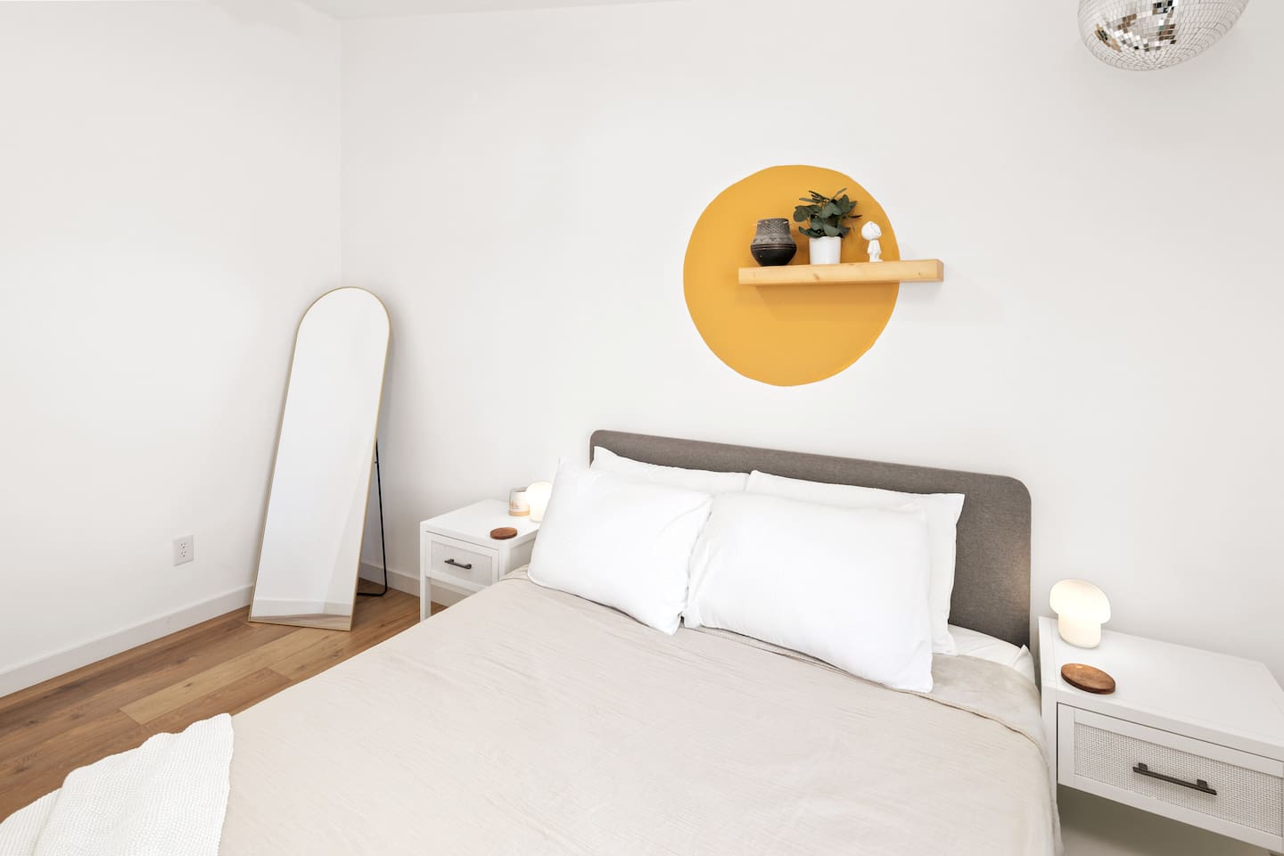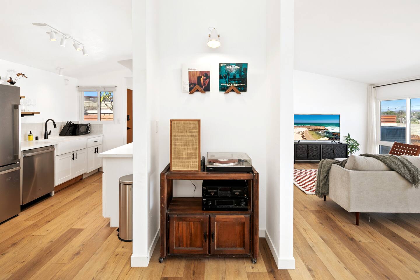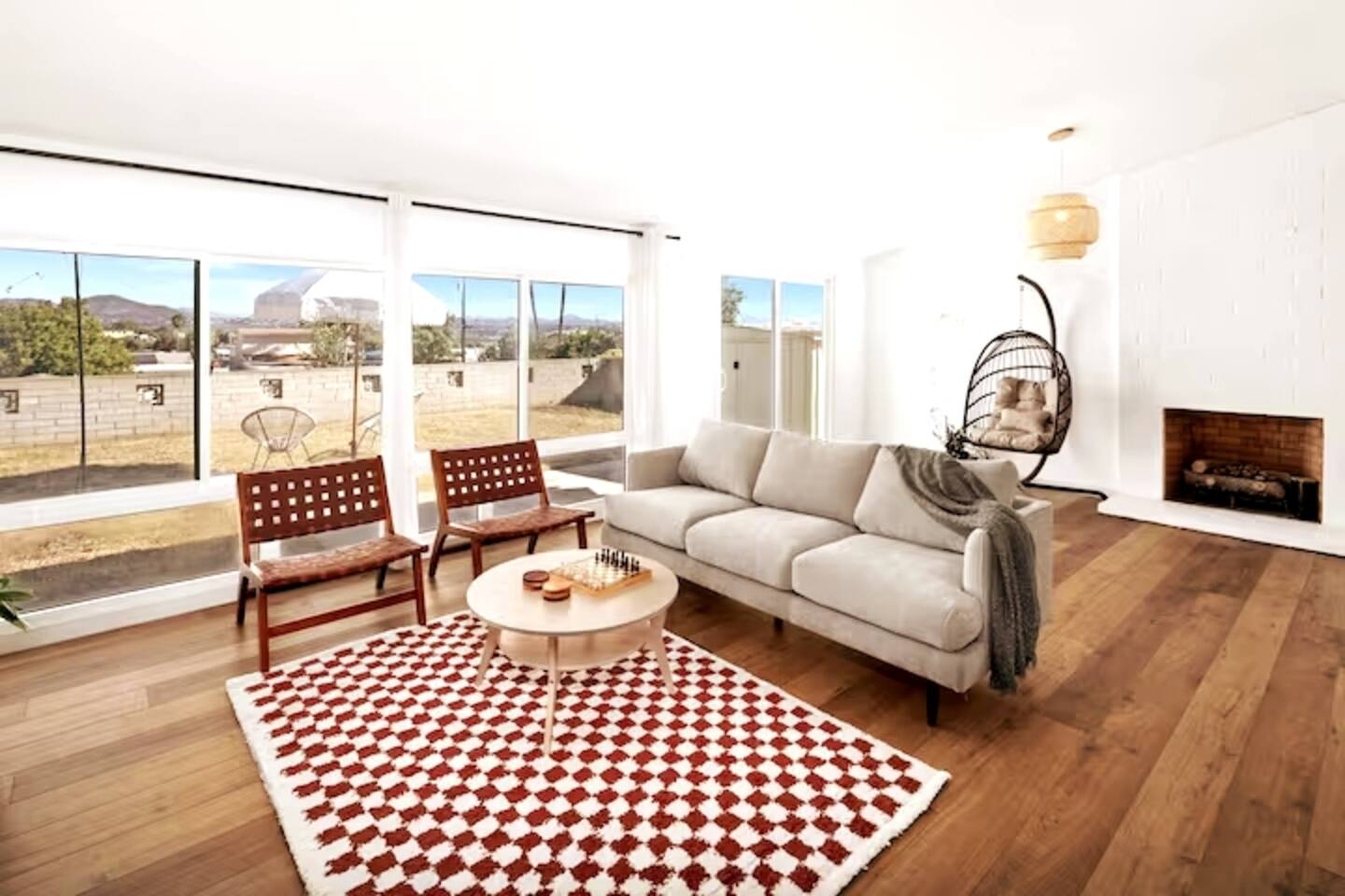 New modern open kitchen with dedicated island bar. 3 stunning bedrooms, 2 new bathrooms, a 60" Samsung smart TV in the living room, open backyard and central A/C. ROOMS-Primary room has a KING size bed with a private bathroom. Second room has a QUEEN bedroom and a dedicated work space. Third room has a FULL bed with perfect access to the backyard views. All memory mattresses are extremely comfortable with hotel quality crisp white linens & towels for your convenience and a fall size standing mirror for you to get ready in. Rooms are all decorated with attention to details and comfort. Each of the bathrooms all have hair dryers, complimentary shampoo, conditioner & gel body wash. In the hallway cabinet 4 beach towels are also provided for guests to use. Each bedroom has an extra blanket in the closet. Kitchen is open, spacious and has a Keurig (pods and ground) coffeemaker, pour over, microwave, blender, toaster, cocktail maker set, a dishwasher and a huge quartz kitchen island where you there's bar seating for those who want a quick bite. Kitchen is also FULLY stocked with all cooking utensils, pots/pans & appliances you need for cooking. Stove has a electric range and a large farmers sink. You can also catch the TV from the kitchen so you can keep up with all the sport games and movies. Dining room has a table for 8. Dining room table or kitchen island are perfect areas to sit and work at as well. To get you started upon your arrival, we do provide a salt & pepper shaker, 6 complimentary coffee pods, 2 dishwasher pods, 2 laundry pods, extra trash bags, cleaning spray, sponge, and extra paper towel roll. A first aid kit is also provided in the bar cabinet. Living room has a comfy couch along with a couple of leather seats with a 60" TV along with High-speed (1 GB) internet connection - perfect for those who need speed for work. Media cabinet has several board games such as Tacos and Burritos, Do You Know Your Family, playing cards and puzzles. We also have a vintage Sony record player with several vinyls available, choose one and enjoy your morning coffee with some crisp music! Backyard features a brand new BBQ, a comfortable seating area/couch with a propane fire pit to hang out and relax in. Also has a dining table that seats up to 6 with an umbrella for those sunny days, a corn hole game, jenga, and connect 4. This house is stocked with bath towels, hairdryers, Irons, and hotel-style body wash and shampoo/conditioner. If you need anything additional during your stay, please feel free to reach out by messaging me on the Airbnb thread.