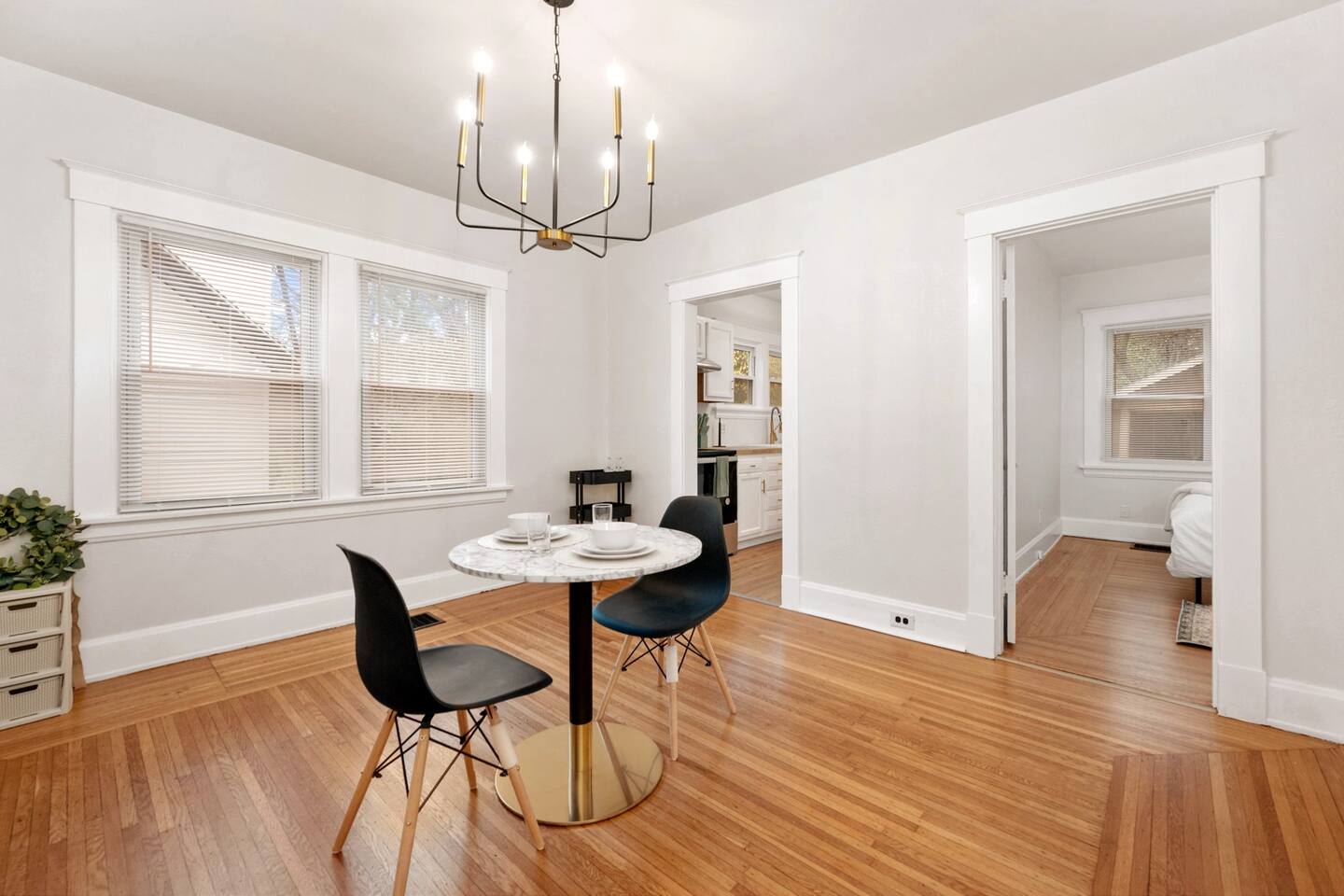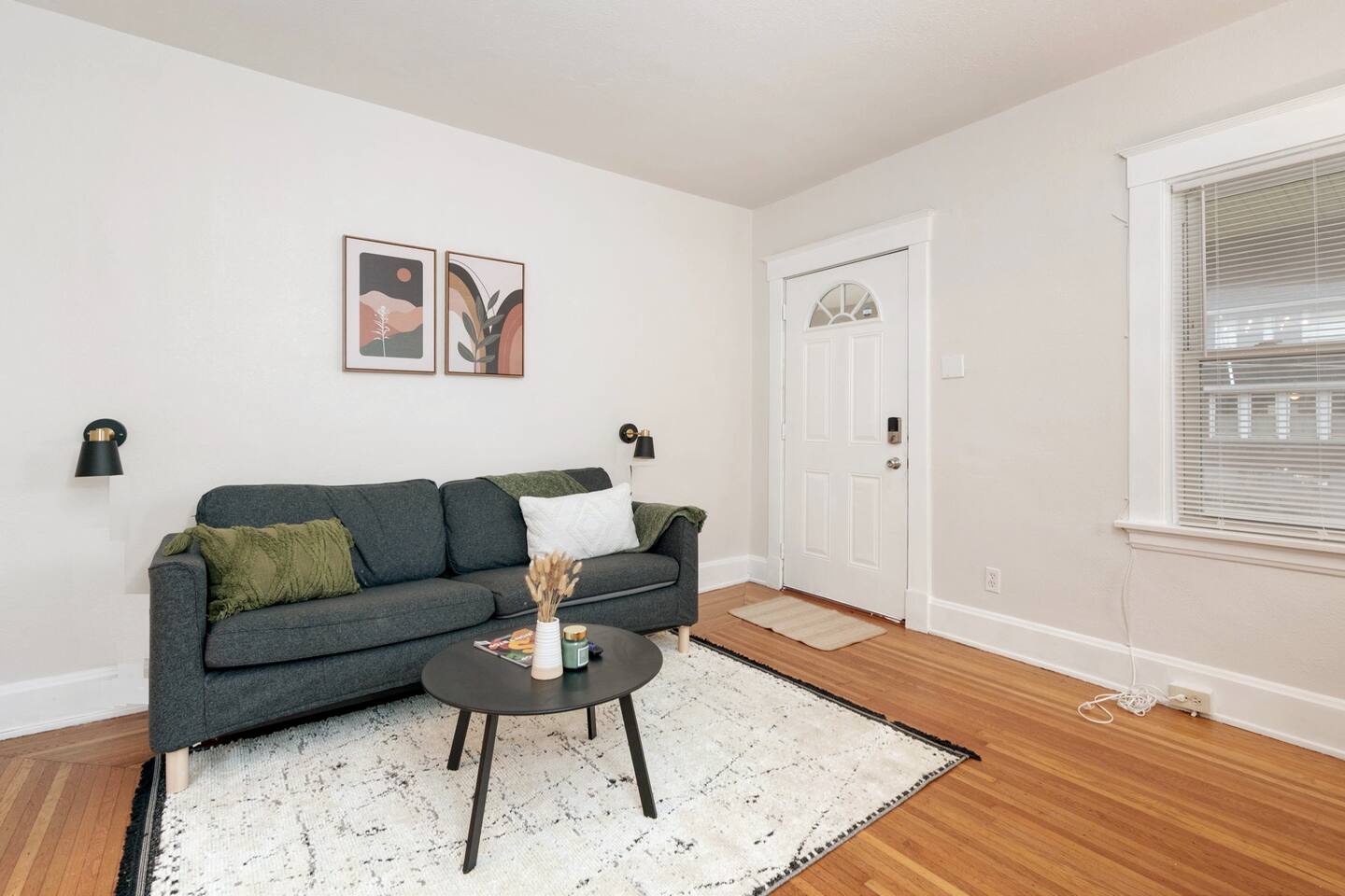 You will have everything you need to feel right at home here. Newly furnished living room with smart TV and bedroom with memory foam queen bed. Brand new appliances and fixtures, large windows that let in lots of natural light, and new kitchen-living area that makes it easy to be social even while cooking. Dedicated dining room with mid-century modern fixtures. Smart thermostat to control the perfect temperature across the space.