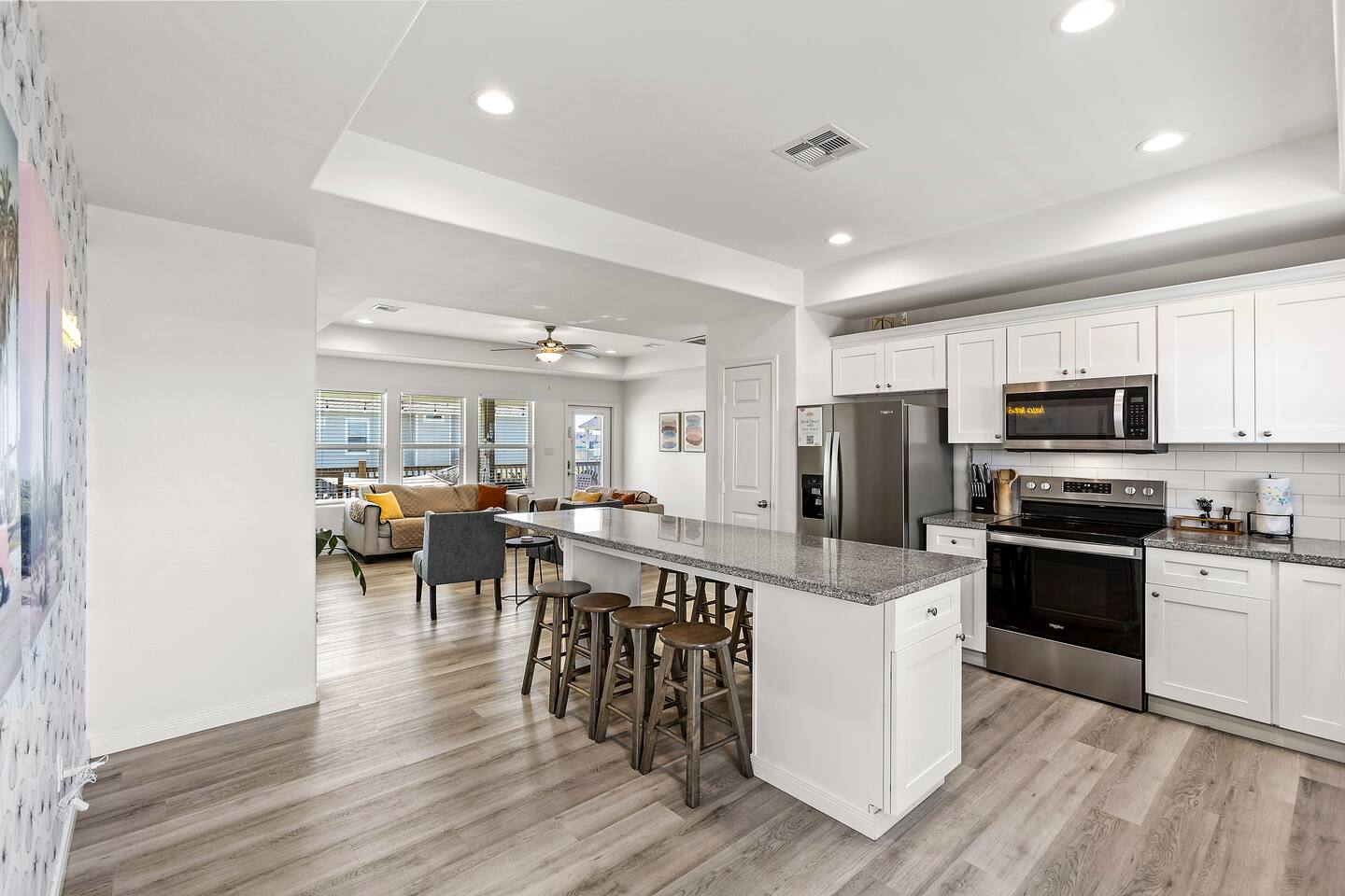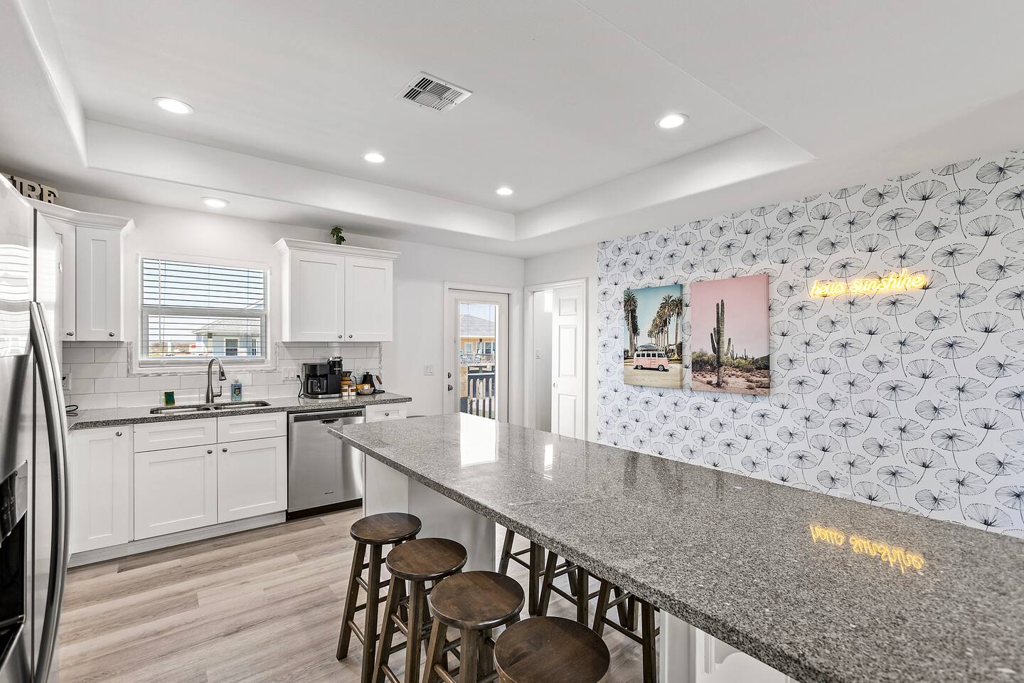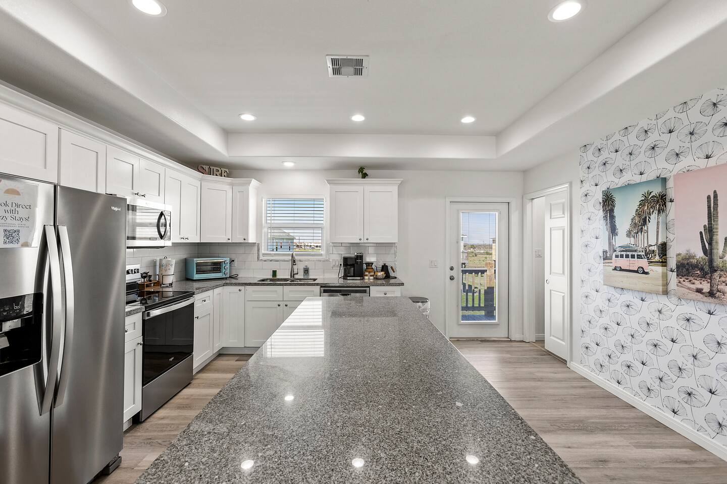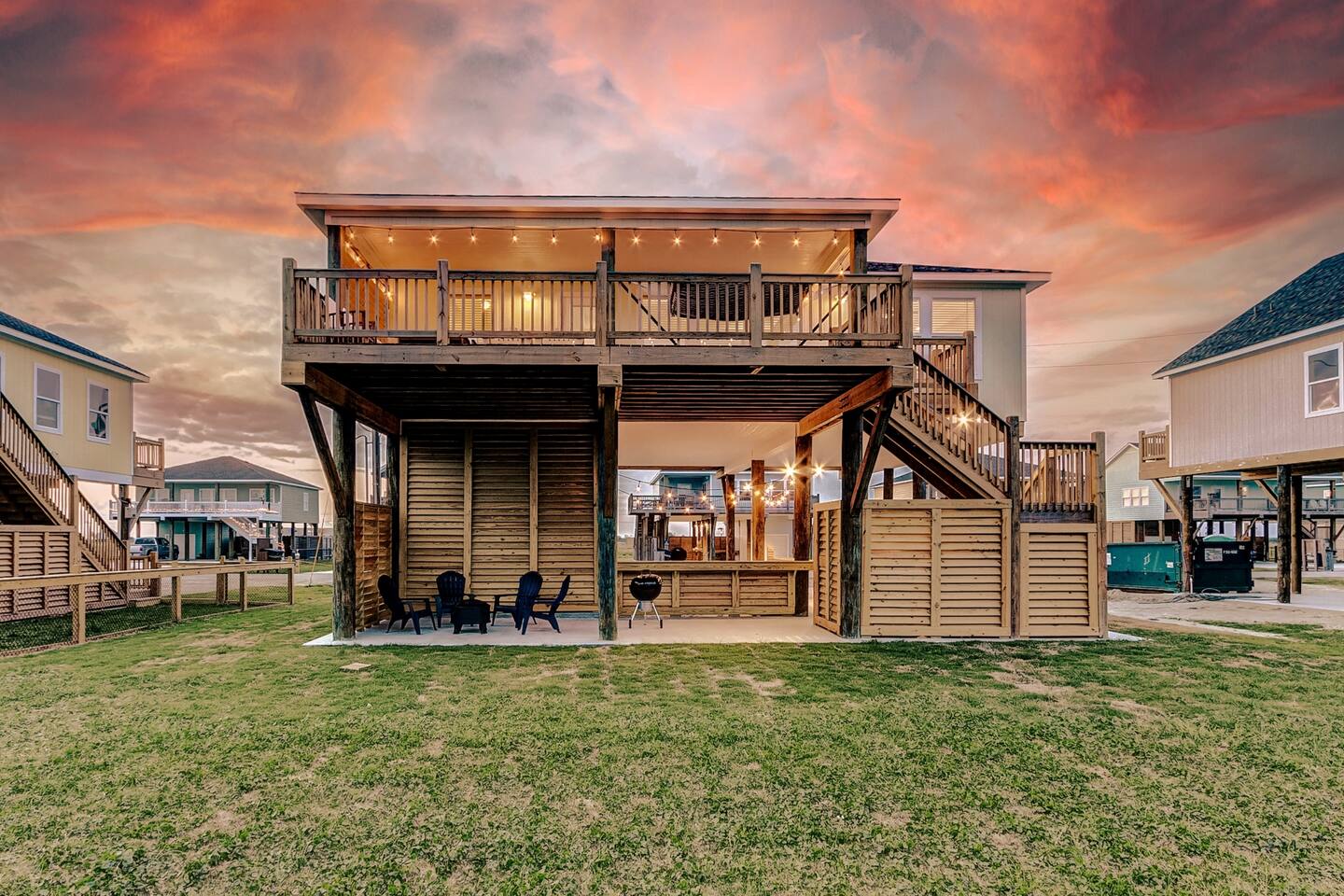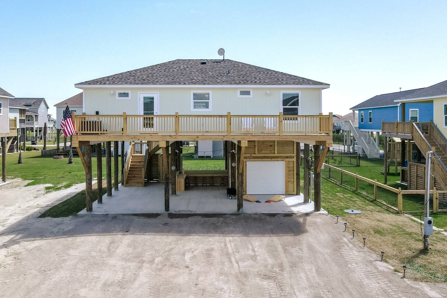 BRAND NEW 3/2 gorgeous beachside home in the Sandpiper subdivision in Crystal Beach. Private beach access and big store are both a few minutes walk away! Perfect for families to experience ocean breezes and when returning from the beach, head to the outdoor shower to rinse off before the family chef curates a delicious meal using pots/pans inside or firing up the charcoal grill. Outdoor space includes plenty of seating around bar/firepit to enjoy the games and watch the romantic sunset/sunrise.