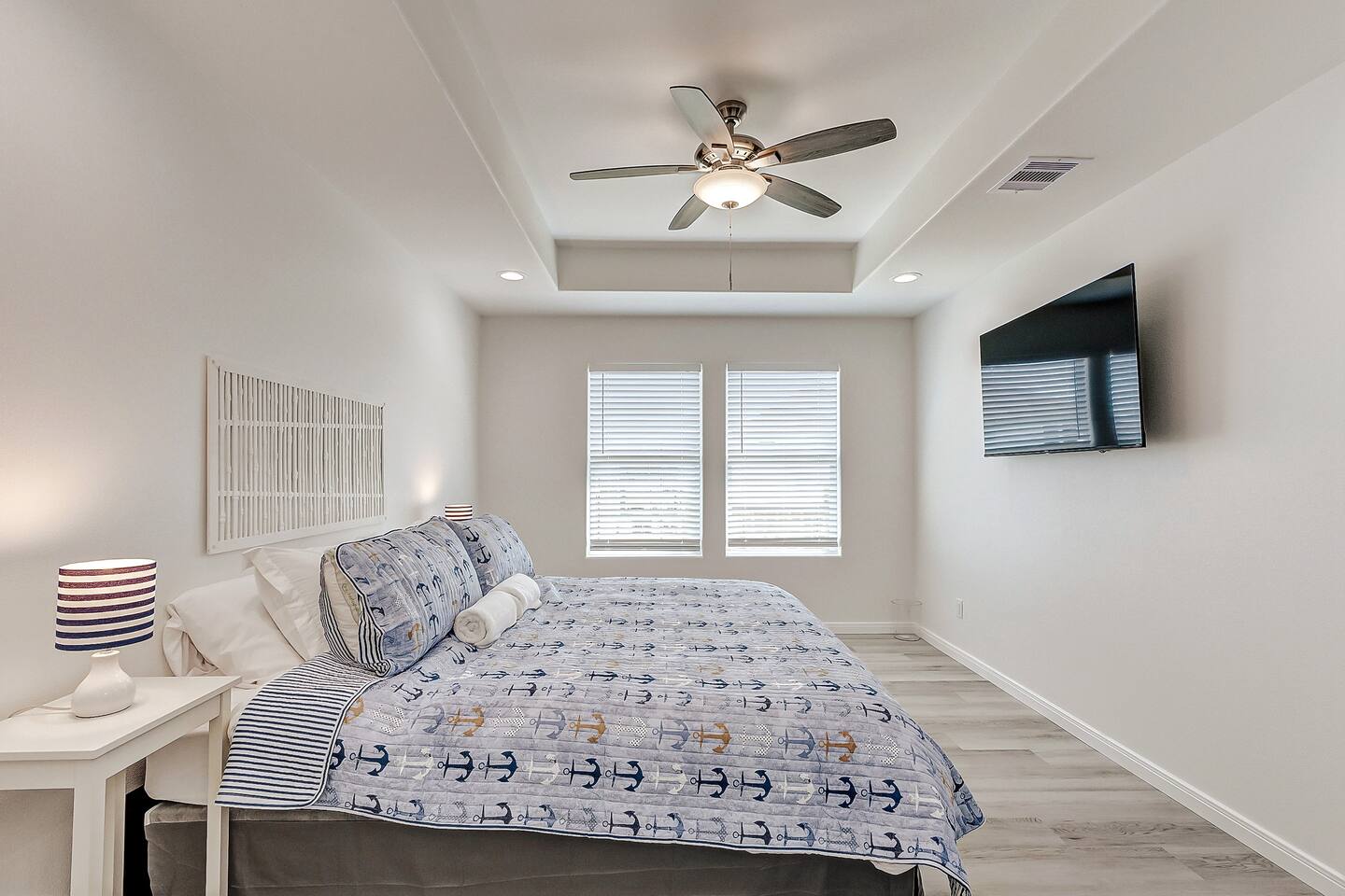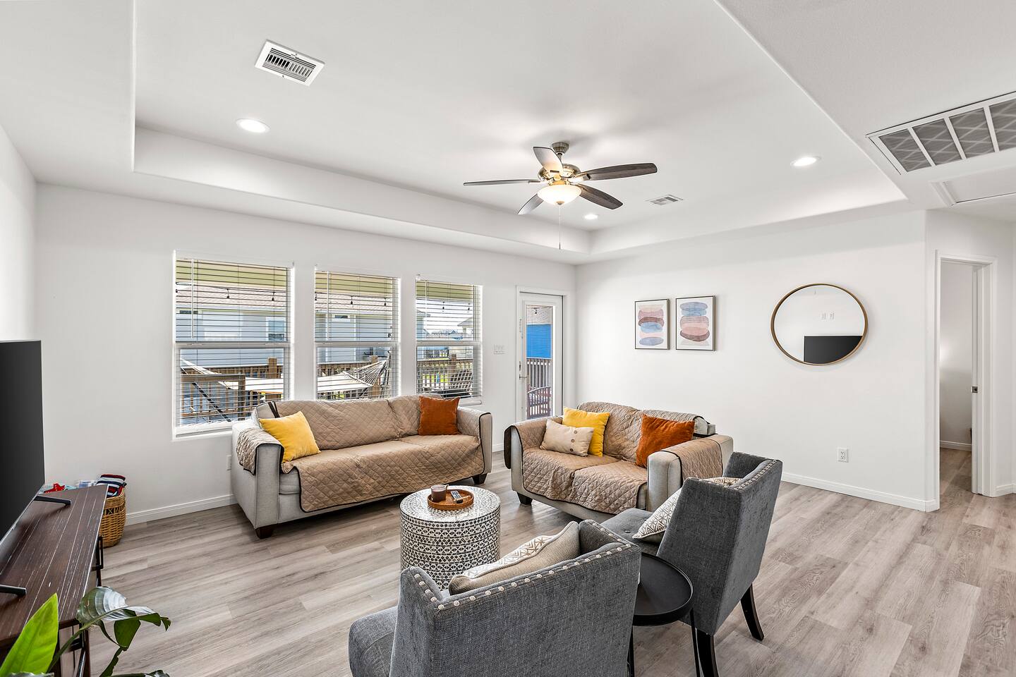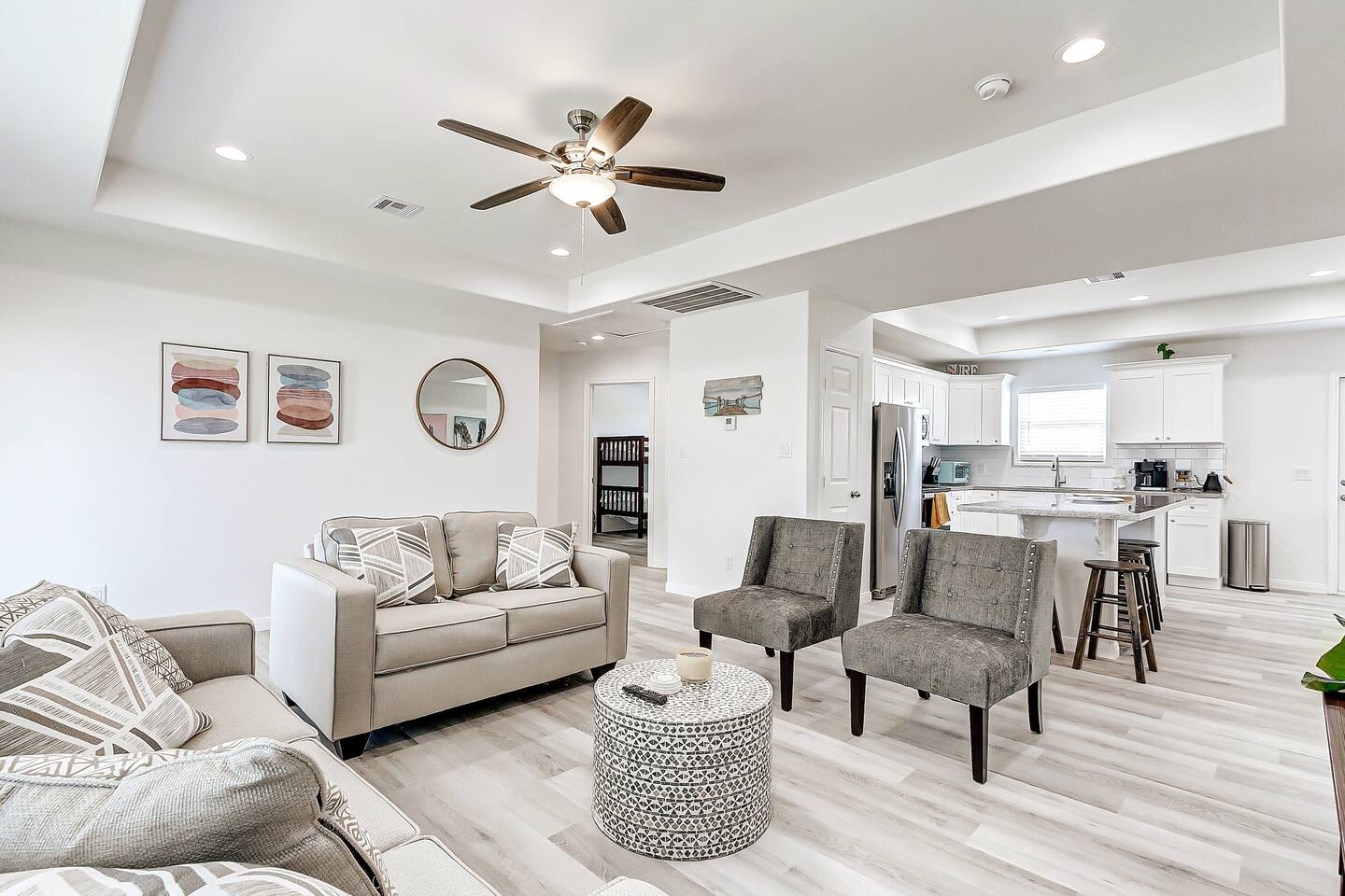 Our 3-bedroom 2-bath custom built home is perfect for families and friends and can sleep 8 people comfortably. Bring your fur babies as well! Our kitchen is a highlight of the house as we understand the best times are around food and drinks. We have several spices available, several pots and pans to use, and Instant Pot available. We also have silverware, plates/bowls, as well as different types of glassware for the perfect beverage (coffee, juice/water, martini, tiki glass). All appliances are completely new and will be there for the chef to design a beautiful meal for the family. Our home was decorated with gatherings in mind as the kitchen so the openness will enable continuous conversations, drinks, and food. We do have high speed internet (fastest available for the peninsula) however when the peninsula gets busy, the WiFi becomes spotty. You'll have 50+ inch smart TVs to catch up on your favorite shows after a beach day and board games for fun. From essentials wise, we supply: - Initial supply of trash bags (white and liners) - 1 roll of paper towels - 2 rolls of toilet paper per bathroom per stay - 4-6 coffee pods - Dishwasher pods - Hand soap - Laundry pods to wash up to 3 loads If you need more, the Big Store will have all these in stock. Exterior wise, there are patio furniture on the top deck for the whole family to enjoy breathtaking sunrise, sunset, and mid-afternoon swing on the hammock while enjoy a small sliver of the ocean. You can hear the waves crashing and relax. The lawn is also sprayed for mosquitos and bugs! We also have a local neighbor that rents out their golf carts for less than market rate - happy to connect you with them if you're interested! Downstairs, there's plenty of seating for the family to enjoy some cold drinks, play games (jenga, cornhole) and gather around the firepit for s'mores. The string lights elevate the environment and will be the perfect place to capture and make memories. There is also a propane grill available. Before going to the beach, we have all your essentials available for you - mini cart to take essentials, cooler to keep your drinks cold, sand toys for the kiddos, and beach chairs to lounge in. We also have beach towels for the family to use.