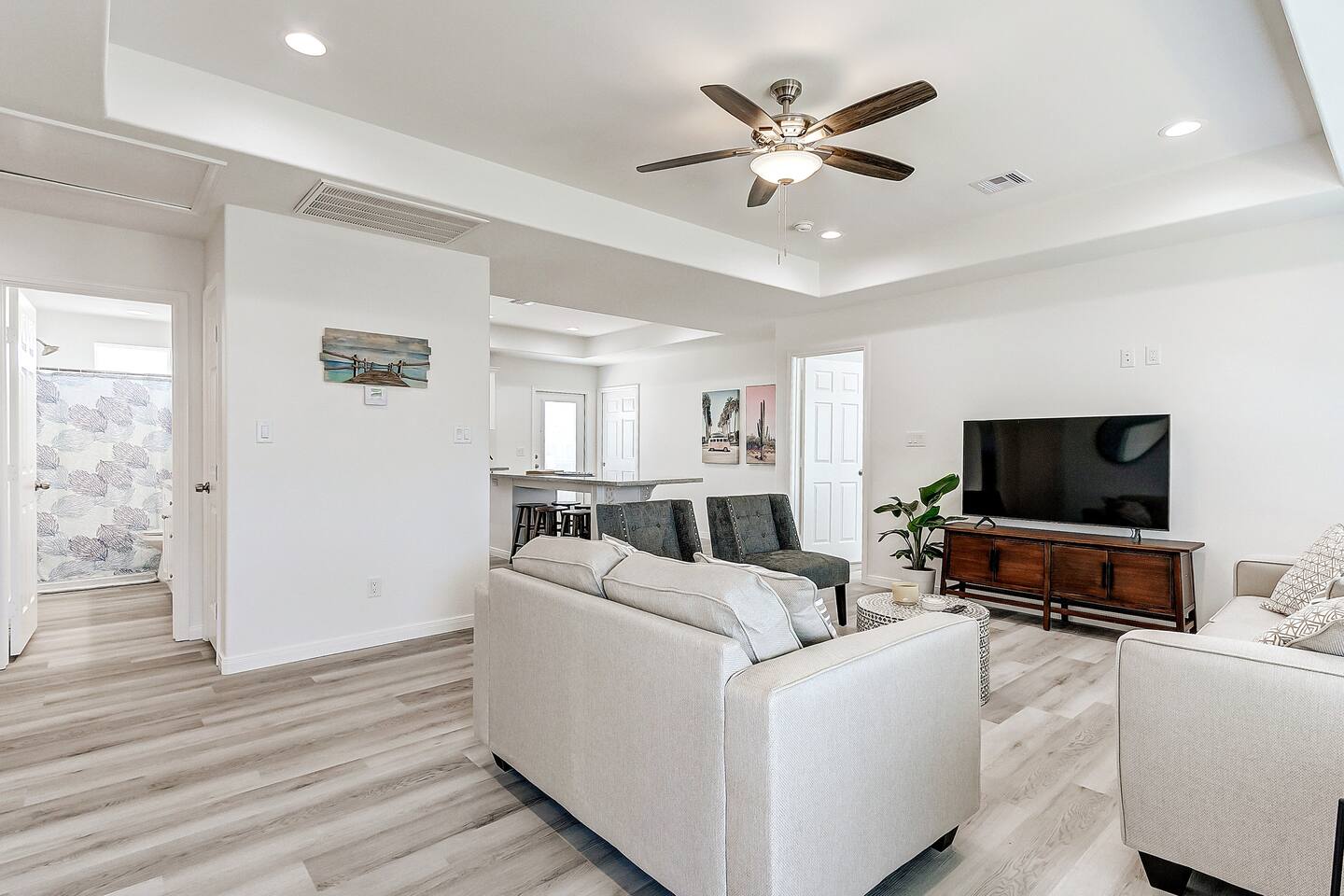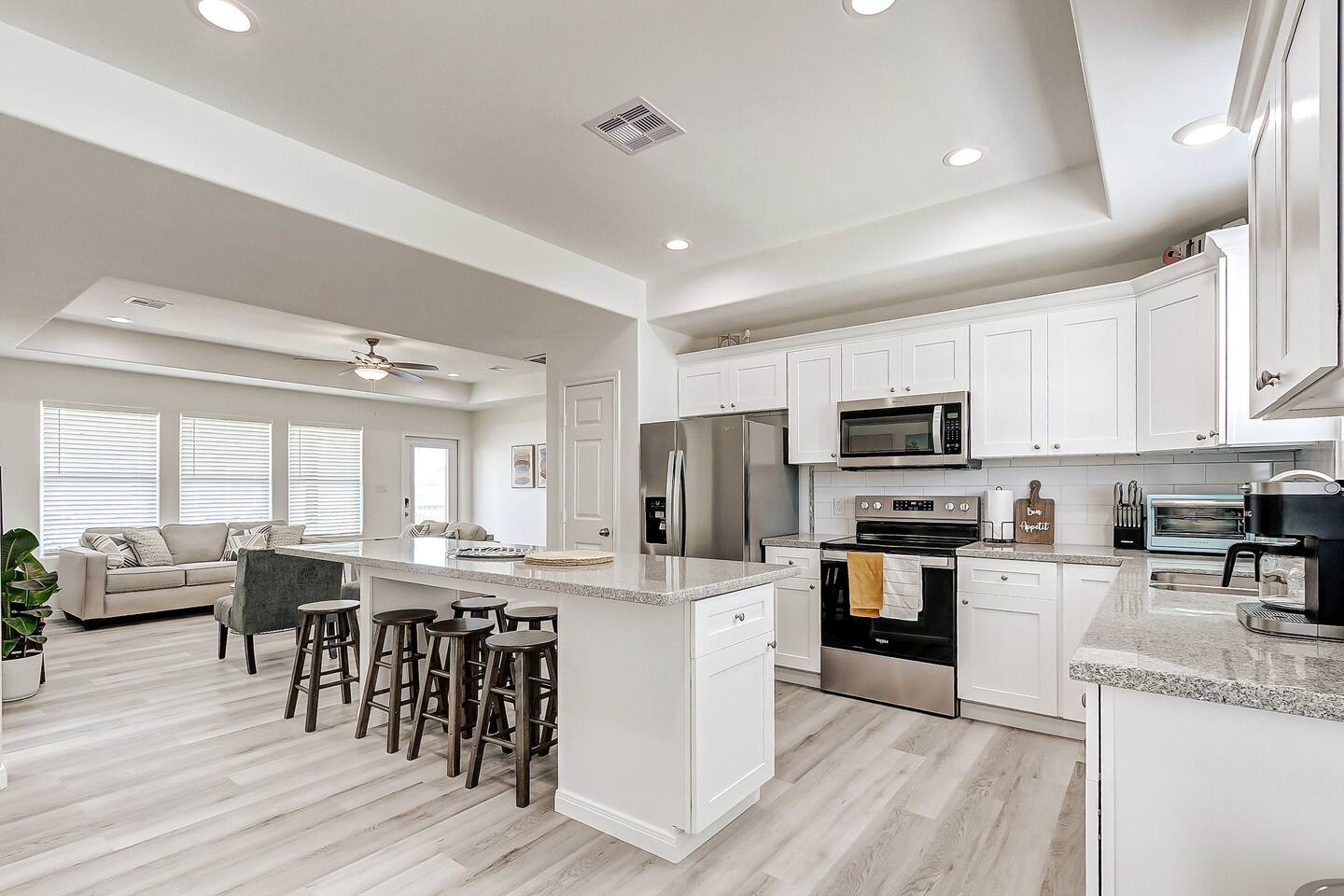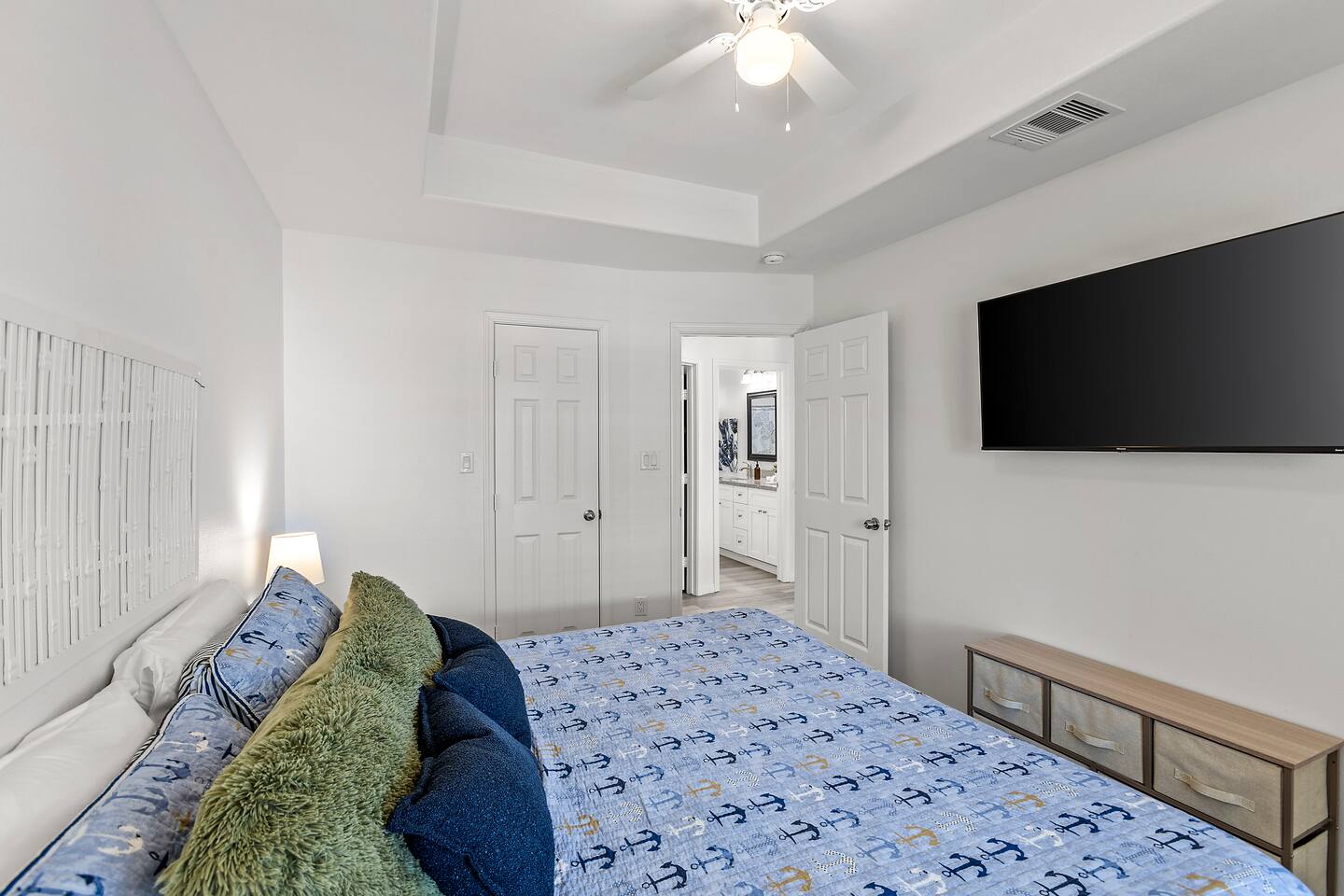 Our 3-bedroom 2-bath custom built home is perfect for families and friends and can sleep 8 people comfortably. Bring your fur babies as well! Our kitchen is a highlight of the house as we understand the best times are around food and drinks. We have several spices available, several pots and pans to use, and Instant Pot available. We also have silverware, plates/bowls, as well as different types of glassware for the perfect beverage (coffee, juice/water, martini, tiki glass). All appliances are completely new and will be there for the chef to design a beautiful meal for the family. Our home was decorated with gatherings in mind as the kitchen so the openness will enable continuous conversations, drinks, and food. We do have high speed internet (fastest available for the peninsula) however when the peninsula gets busy, the WiFi becomes spotty. You'll have 50+ inch smart TVs to catch up on your favorite shows after a beach day and board games for fun. From essentials wise, we supply: - Initial supply of trash bags (white and liners) - 1 roll of paper towels - 2 rolls of toilet paper per bathroom per stay - 4-6 coffee pods - Dishwasher pods - Hand soap - Laundry pods to wash up to 3 loads If you need more, the Big Store will have all these in stock. Exterior wise, there are patio furniture on the top deck for the whole family to enjoy breathtaking sunrise, sunset, and mid-afternoon swing on the hammock while enjoy a small sliver of the ocean. You can hear the waves crashing and relax. The lawn is also sprayed for mosquitos and bugs! We also have a local neighbor that rents out their golf carts for less than market rate - happy to connect you with them if you're interested! Downstairs, there's plenty of seating for the family to enjoy some cold drinks, play games (jenga, cornhole) and gather around the firepit for s'mores. The string lights elevate the environment and will be the perfect place to capture and make memories. There is also a propane grill available. Before going to the beach, we have all your essentials available for you - mini cart to take essentials, cooler to keep your drinks cold, sand toys for the kiddos, and beach chairs to lounge in. We also have beach towels for the family to use.