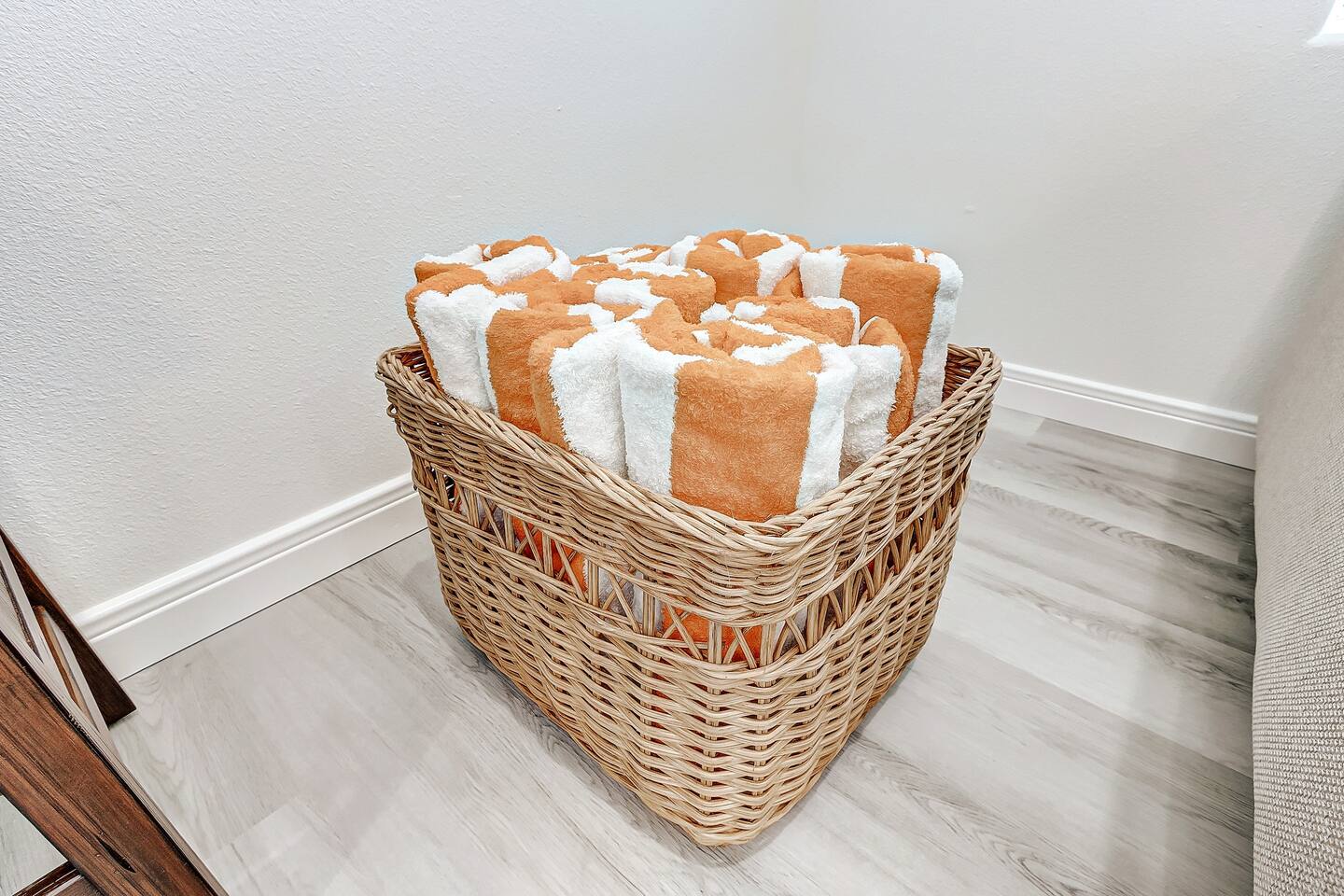 - Beach essentials Beach towels, umbrella, beach blanket, snorkeling gear