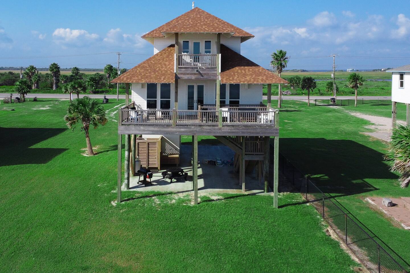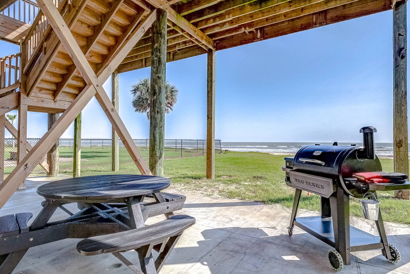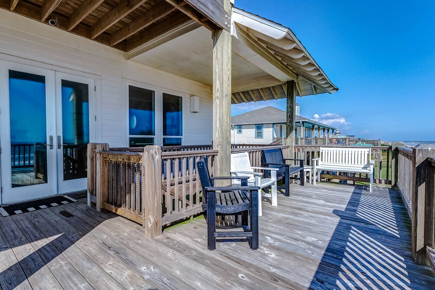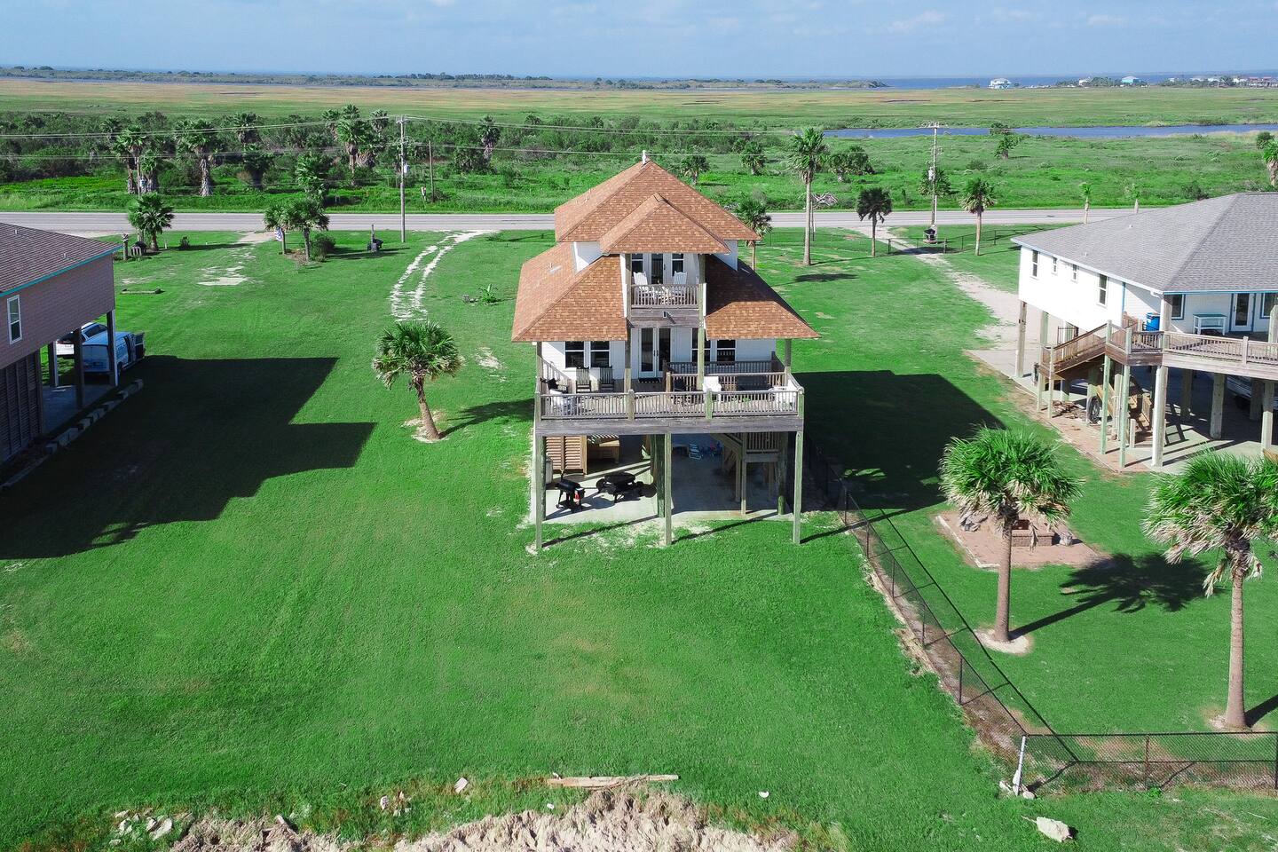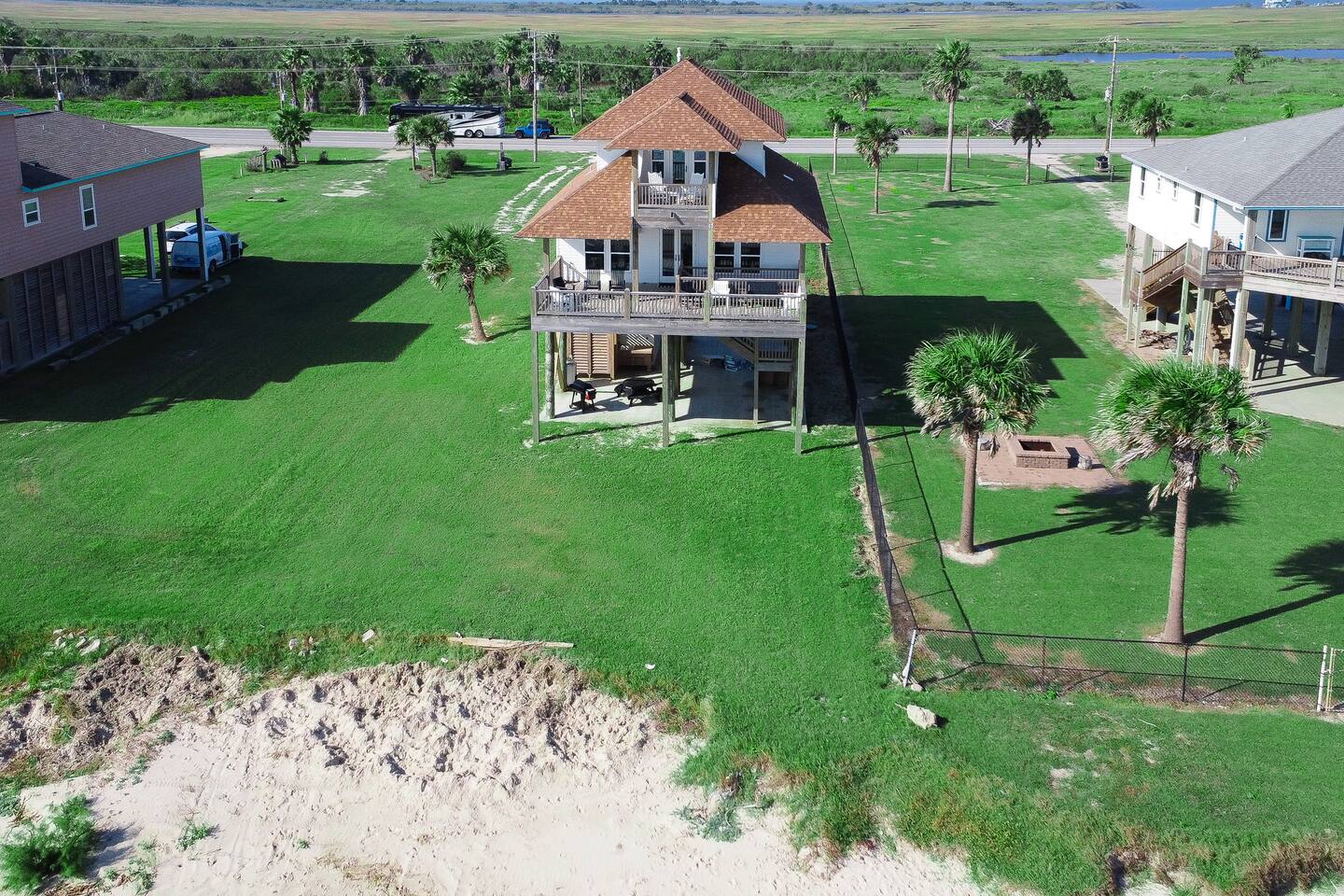 Experience a serene coastal getaway at Lonestar Beach Retreat in Gilchrist, Texas. Enjoy the convenience of being just steps away from the beautiful beach, where you can spend your days building sandcastles, playing in the waves, or simply soaking up the sun on the sandy shores. Oceanfront: Enjoy spectacular views of the Gulf of Mexico and you can enjoy the water within steps from the home. Spacious Interior: beautifully decorated home with 4 large bedrooms and 3 full bathrooms, offering plenty of room for up to 14 guests. There are also two futons and a cot available for guests to enjoy. Open Concept Living: The bright and airy living room features large windows that fill the space with natural light and offer amazing ocean views. Fully Equipped Kitchen: Prepare meals with ease in the fully stocked kitchen, complete with modern appliances, stone countertops, and ample cabinet space. Private Deck & Patio: Step outside to your expansive deck and patio area with outdoor seating, perfect for watching stunning sunrises and sunsets over the water. The primary bedroom located on the top floor has a balcony and is perfect for guests to enjoy a morning coffee with the serene views. Master Suite: A luxurious master suite with a king bed, en-suite bathroom, and private balcony overlooking the Gulf. There is also an extra futon and cot for additional guests and space. Additional Bedrooms: Two queen bedrooms and a bunk room with a set of bunk beds – perfect for kids or additional guests. Beach Access: Direct access to the beach just steps from the property, making it easy to enjoy sand and surf whenever you please. Amenities: Stay connected with high-speed Starlink internet, ideal for streaming, gaming, or remote work, flat-screen TVs, washer and dryer, central A/C, electric charger, and plenty of parking space. Pet friendly and plenty of space for entertainment. Things to Do: - Spend your days lounging on the beach, collecting seashells, and enjoying the ocean breeze. - Take a short drive to the nearby Crystal Beach for some of the best fishing, boating, and water activities. - Explore local dining, shopping, and entertainment options in nearby Bolivar Peninsula or Galveston.