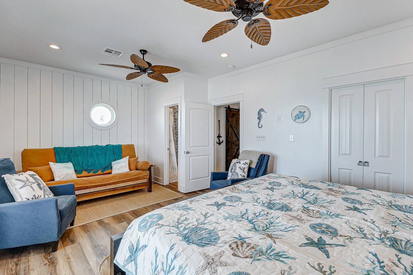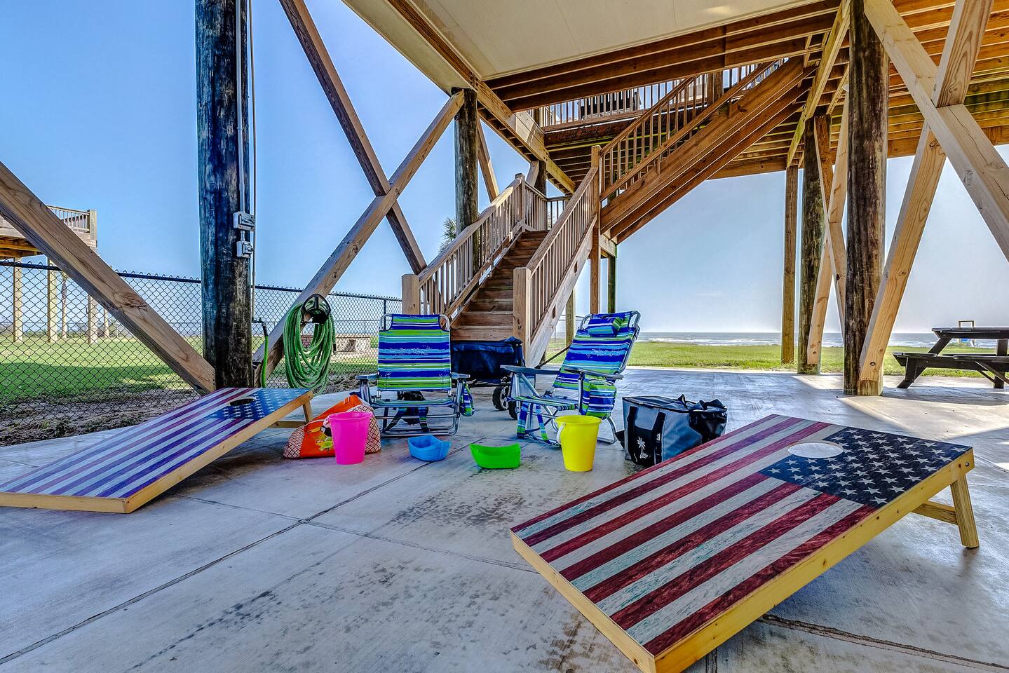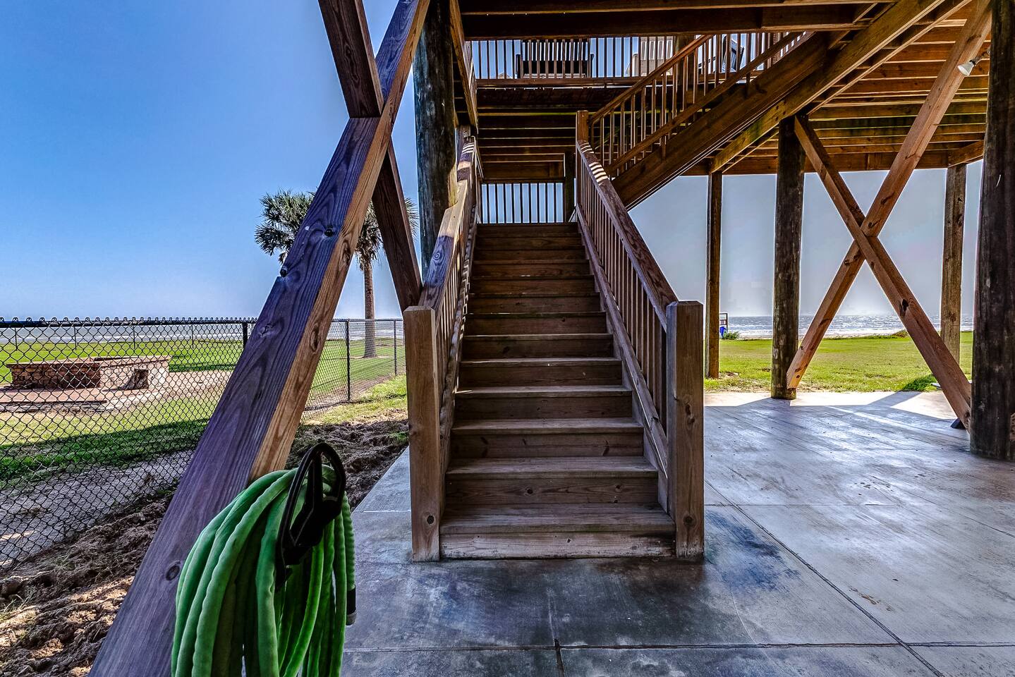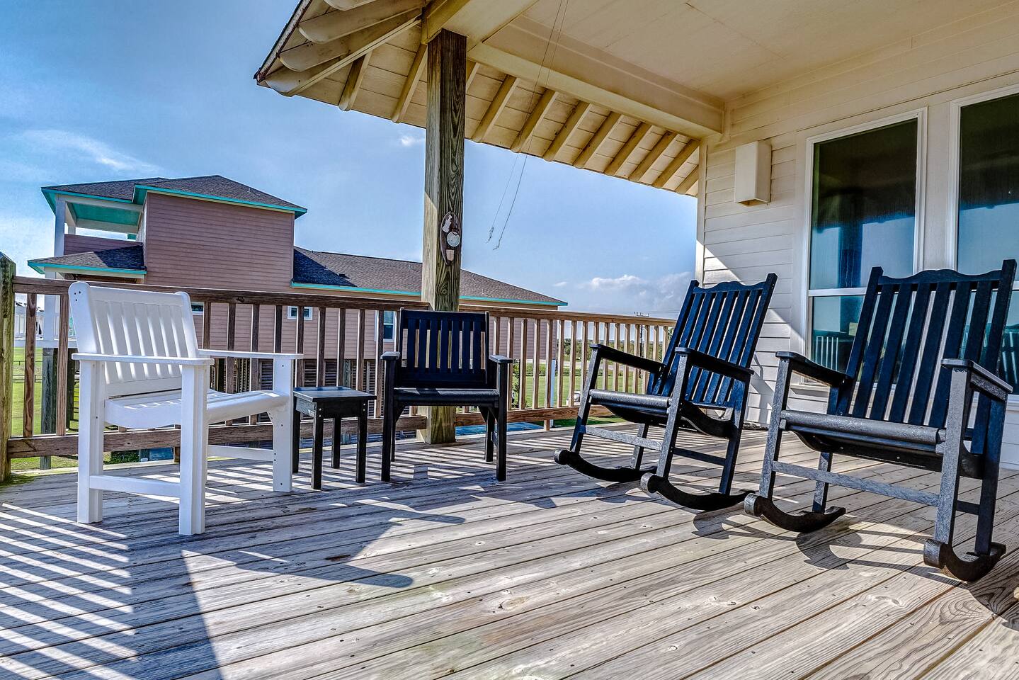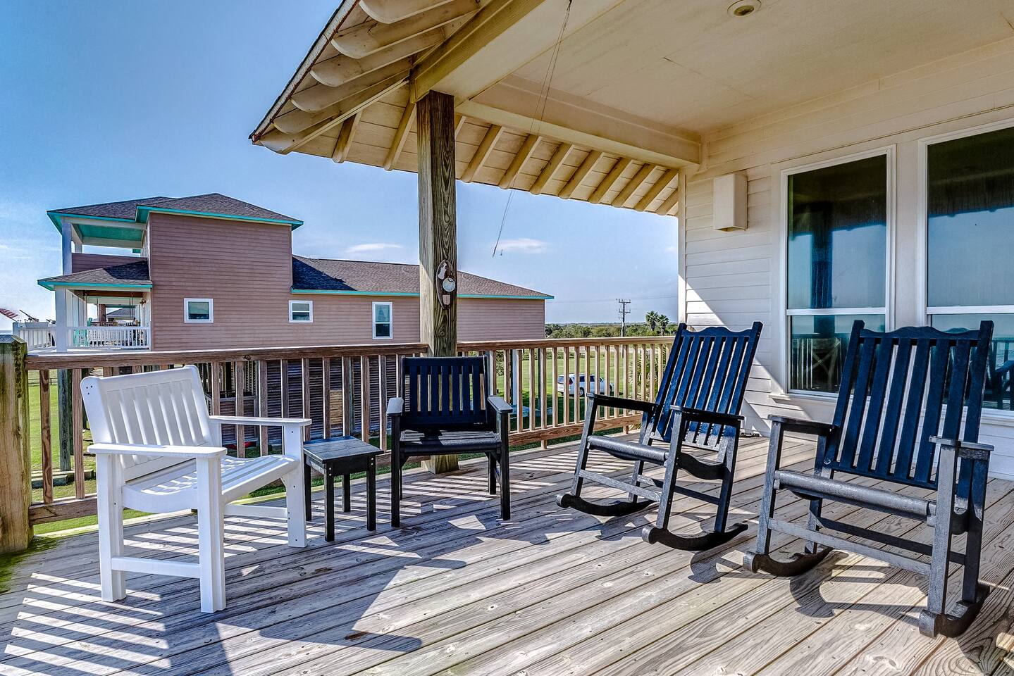 Experience a serene coastal getaway at Lonestar Beach Retreat in Gilchrist, Texas. Enjoy the convenience of being just steps away from the beautiful beach, where you can spend your days building sandcastles, playing in the waves, or simply soaking up the sun on the sandy shores. Oceanfront: Enjoy spectacular views of the Gulf of Mexico and you can enjoy the water within steps from the home. Spacious Interior: beautifully decorated home with 4 large bedrooms and 3 full bathrooms, offering plenty of room for up to 14 guests. There are also two futons and a cot available for guests to enjoy. Open Concept Living: The bright and airy living room features large windows that fill the space with natural light and offer amazing ocean views. Fully Equipped Kitchen: Prepare meals with ease in the fully stocked kitchen, complete with modern appliances, stone countertops, and ample cabinet space. Private Deck & Patio: Step outside to your expansive deck and patio area with outdoor seating, perfect for watching stunning sunrises and sunsets over the water. The primary bedroom located on the top floor has a balcony and is perfect for guests to enjoy a morning coffee with the serene views. Master Suite: A luxurious master suite with a king bed, en-suite bathroom, and private balcony overlooking the Gulf. There is also an extra futon and cot for additional guests and space. Additional Bedrooms: Two queen bedrooms and a bunk room with a set of bunk beds – perfect for kids or additional guests. Beach Access: Direct access to the beach just steps from the property, making it easy to enjoy sand and surf whenever you please. Amenities: Stay connected with high-speed Starlink internet, ideal for streaming, gaming, or remote work, flat-screen TVs, washer and dryer, central A/C, electric charger, and plenty of parking space. Pet friendly and plenty of space for entertainment. Things to Do: - Spend your days lounging on the beach, collecting seashells, and enjoying the ocean breeze. - Take a short drive to the nearby Crystal Beach for some of the best fishing, boating, and water activities. - Explore local dining, shopping, and entertainment options in nearby Bolivar Peninsula or Galveston.