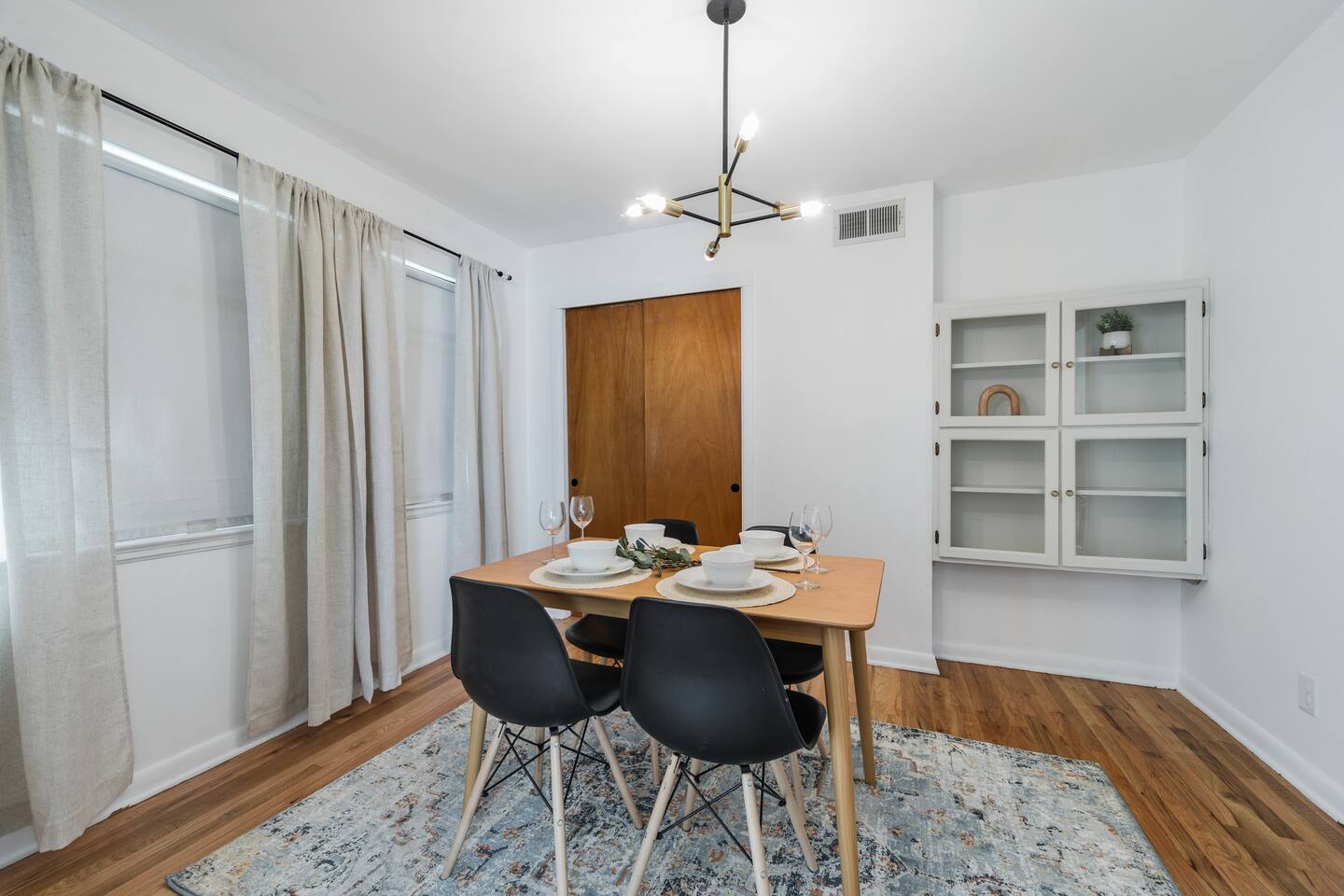 Our home comes with fully equipped kitchen that includes a Keurig and electric kettle to enjoy tea. Living room with comfy Article couch, smart thermostat, 55 in Samsung Smart TV and vinyl records to relax. 2 bedrooms: both bedrooms with a queen sized memory foam bed, standing mirror, and closet. Dedicated dining room for 4 which can also be used as a workspace. Enjoy 1 GBPS internet for all your entertainment or work needs.